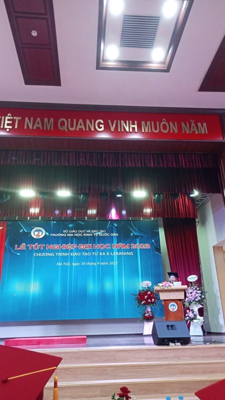 Buổi lễ bế giảng chương trình đào tạo từ xa của Đại học Kinh tế Quốc dân ngày 10/09/2023 vừa qua, với sự tham gia của của toàn thể quý thầy cô, ban lãnh đạo, cùng các bạn tân sinh viên, đã diễn ra một cách trang trọng và ý nghĩa, đánh dấu chặng đường học tập của sinh viên.