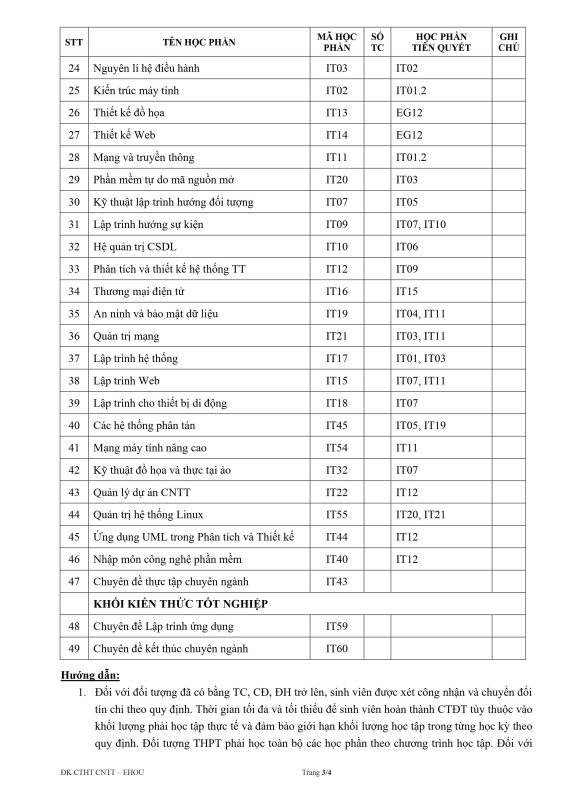 Khung chương trình học ngành công nghệ thông tin – Trường Đại Học Mở Hà Nội