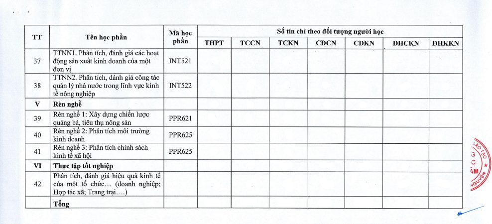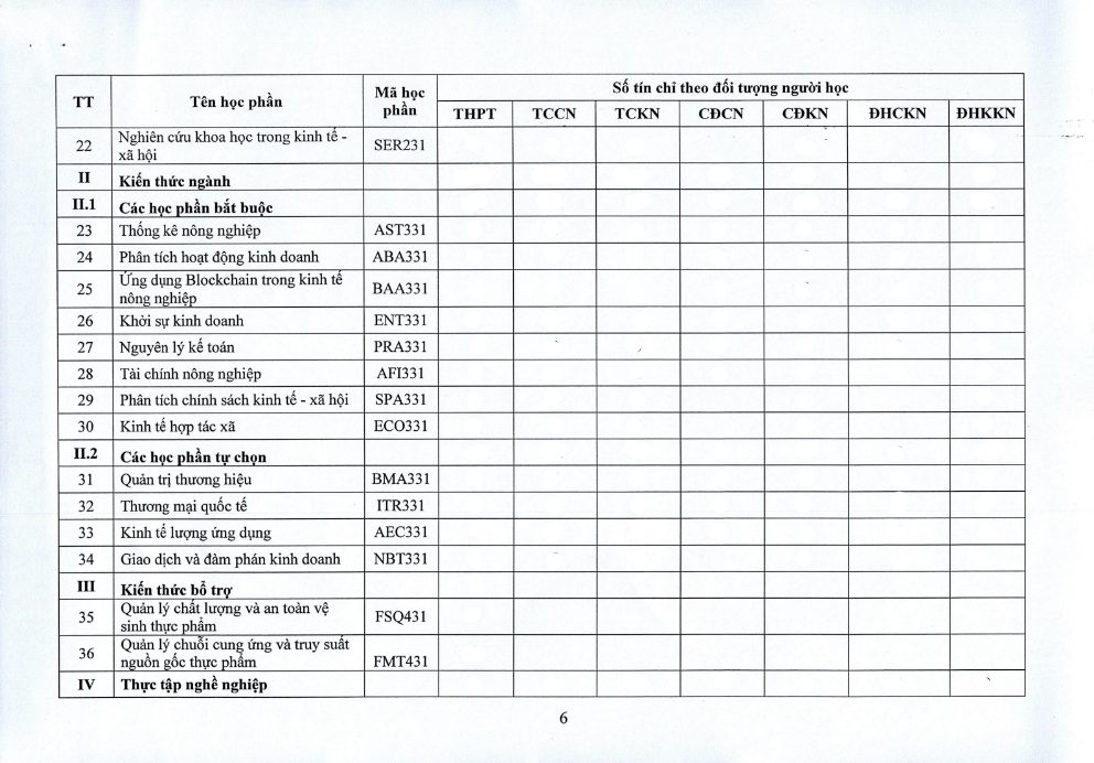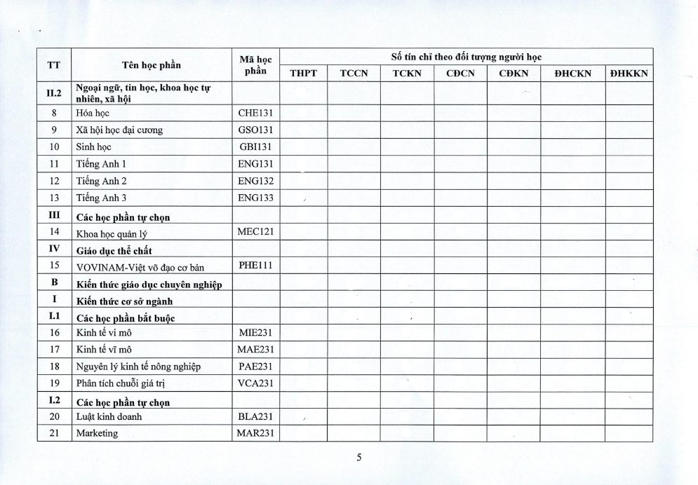 Khung chương trình học ngành kinh tế nông nghiệp
