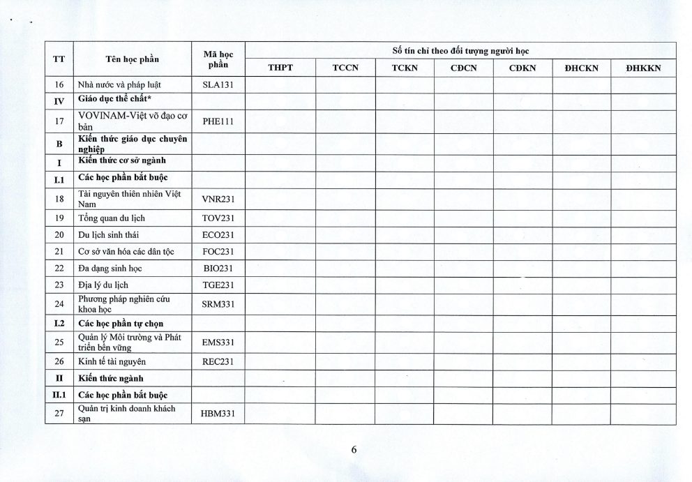 Khung chương trình học ngành quản lý tài nguyên và môi trường