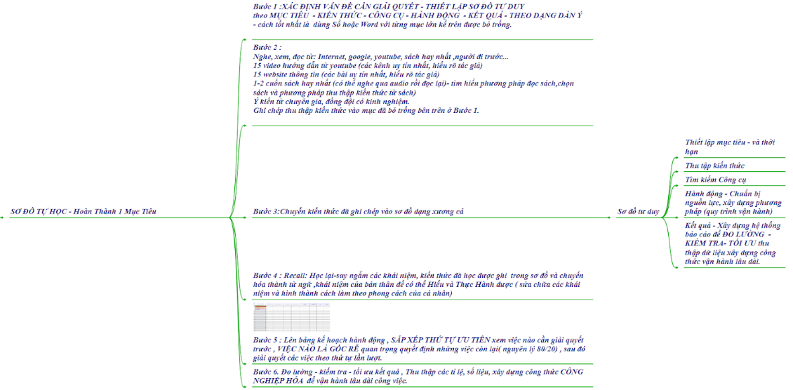 Sơ đồ càng chi tiết thì việc thực hiện mục tiêu càng dễ dàng. Sử dụng sơ đồ tư duy để tổ chức thông tin giúp cải thiện khả năng hiểu và nhớ lâu. Các dạng sơ đồ như xương cá hoặc nơron thần kinh sẽ cung cấp cách tiếp cận trực quan, giúp bạn kết nối thông tin một cách logic và sáng tạo.
